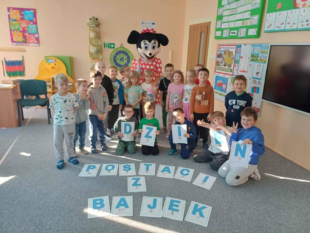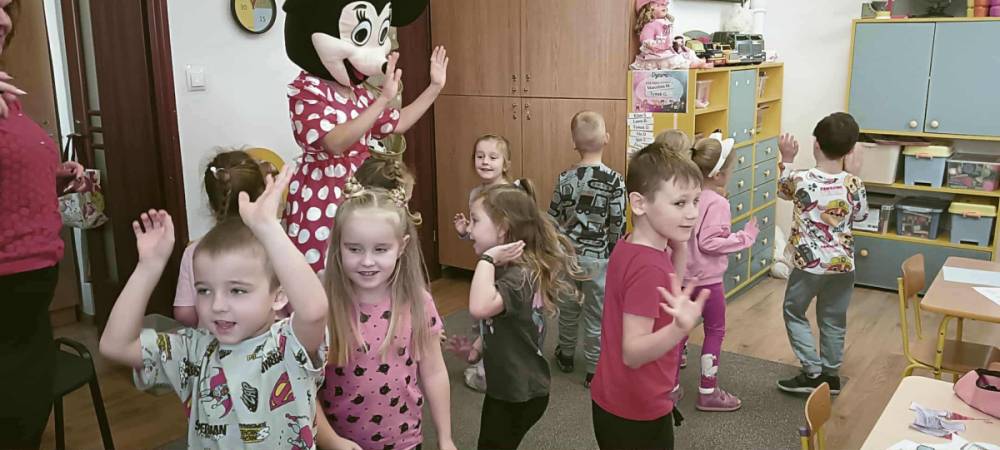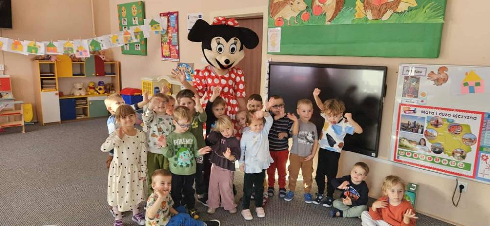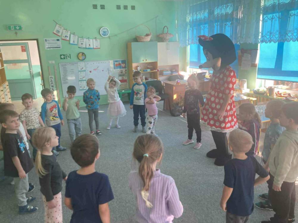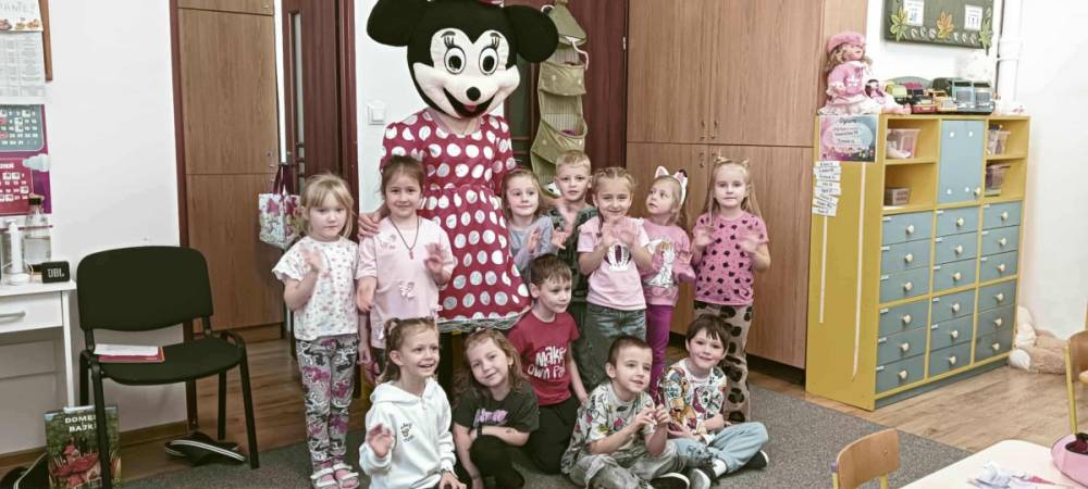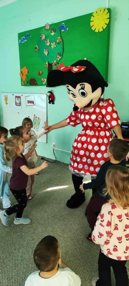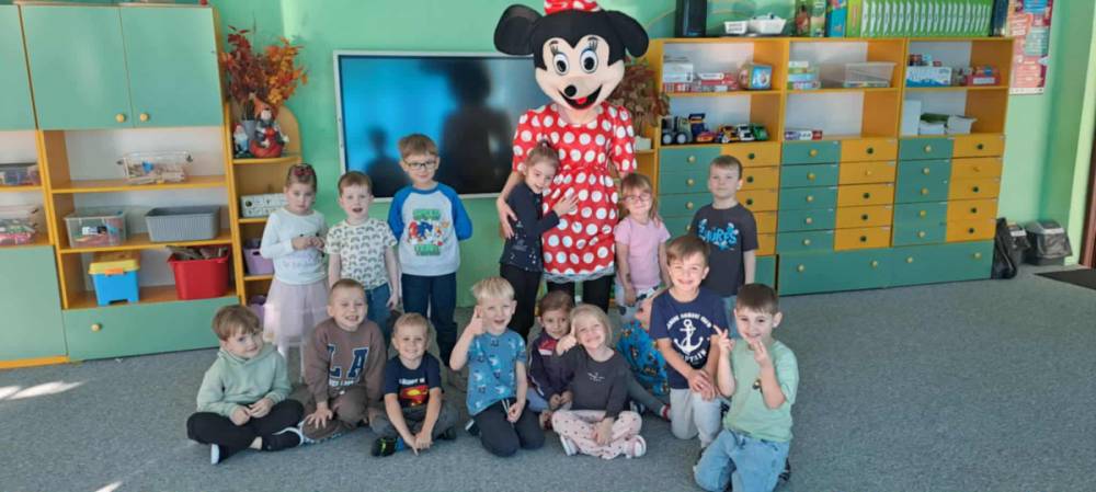My natomiast przynieśliśmy swoje ulubione zabawki z bajek. Naszym gościem była Myszka Minnie. Był taniec postaci bajkowych, zgadywanki i zabawa. Nie mogło zabraknąć oczywiście literatury. Było super!!!