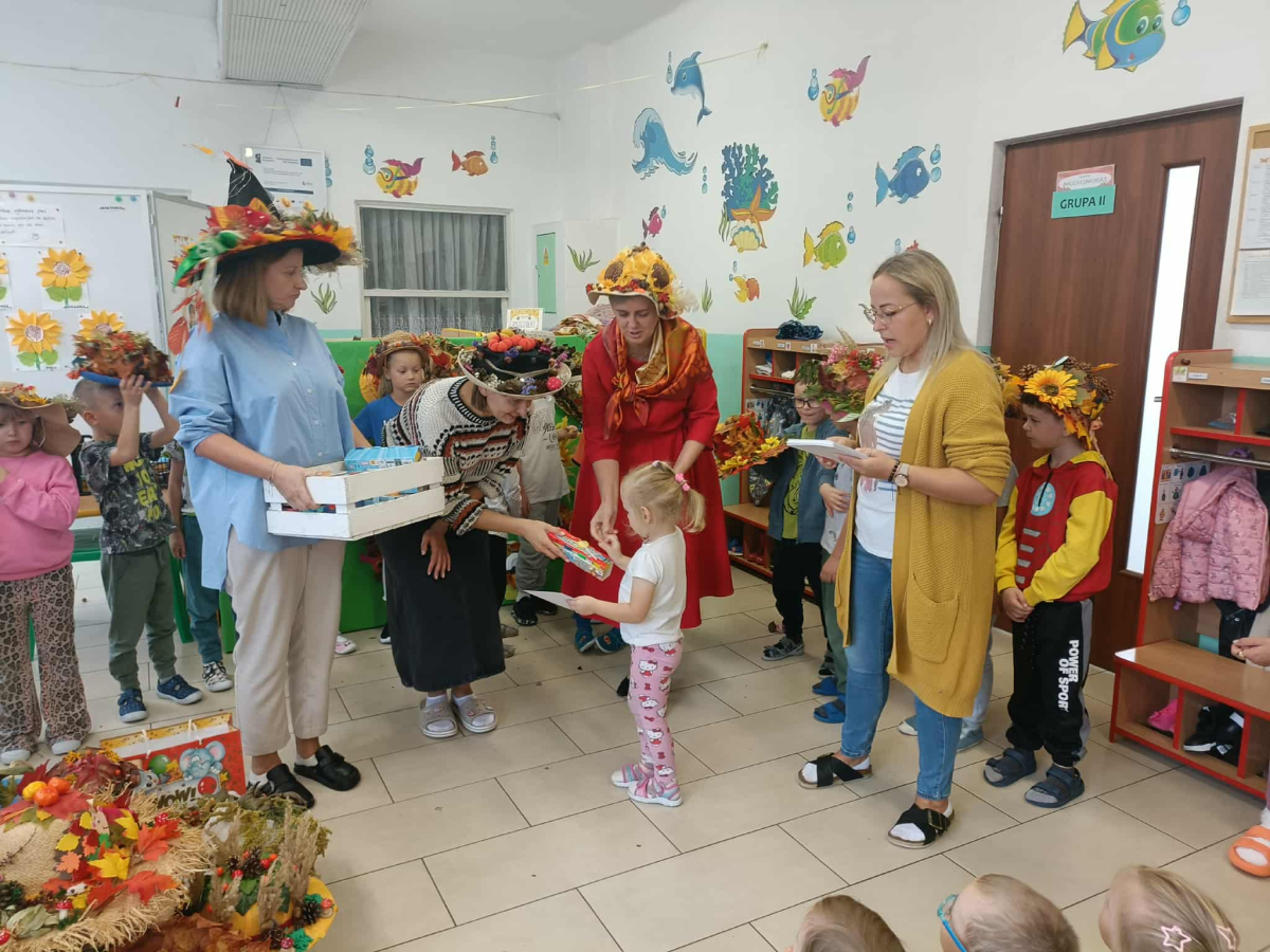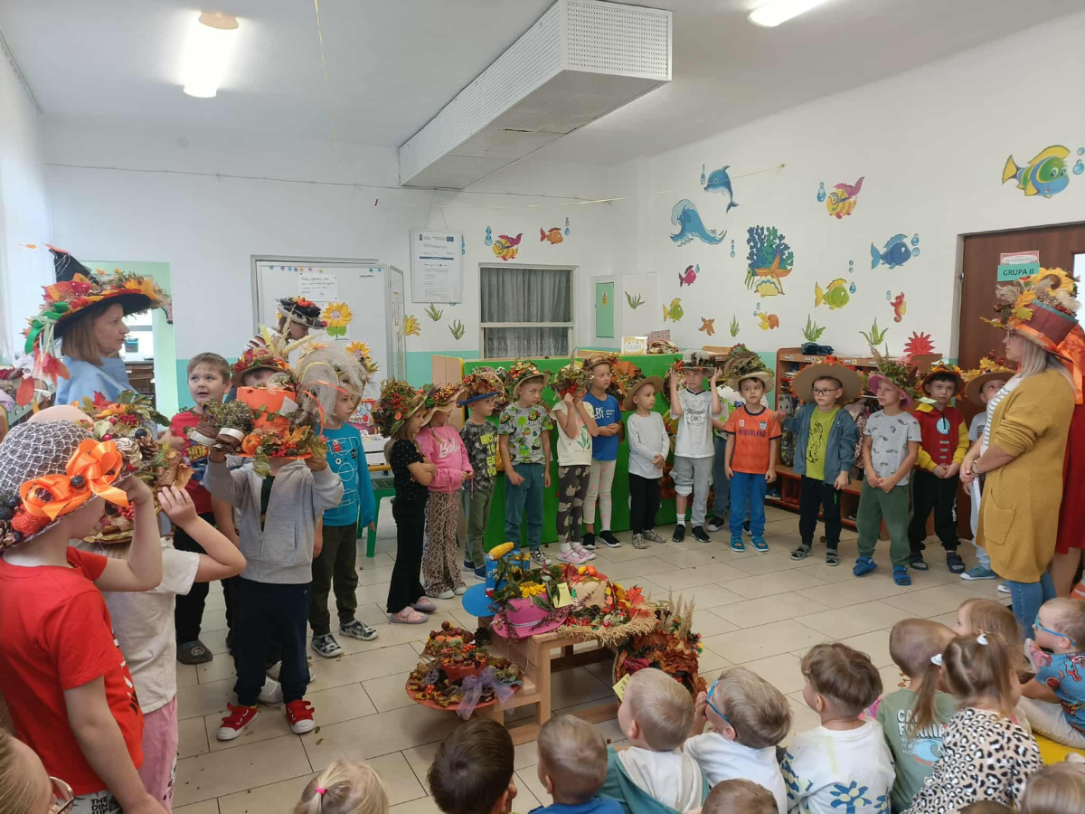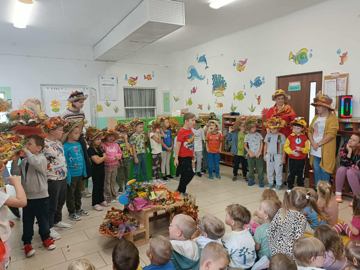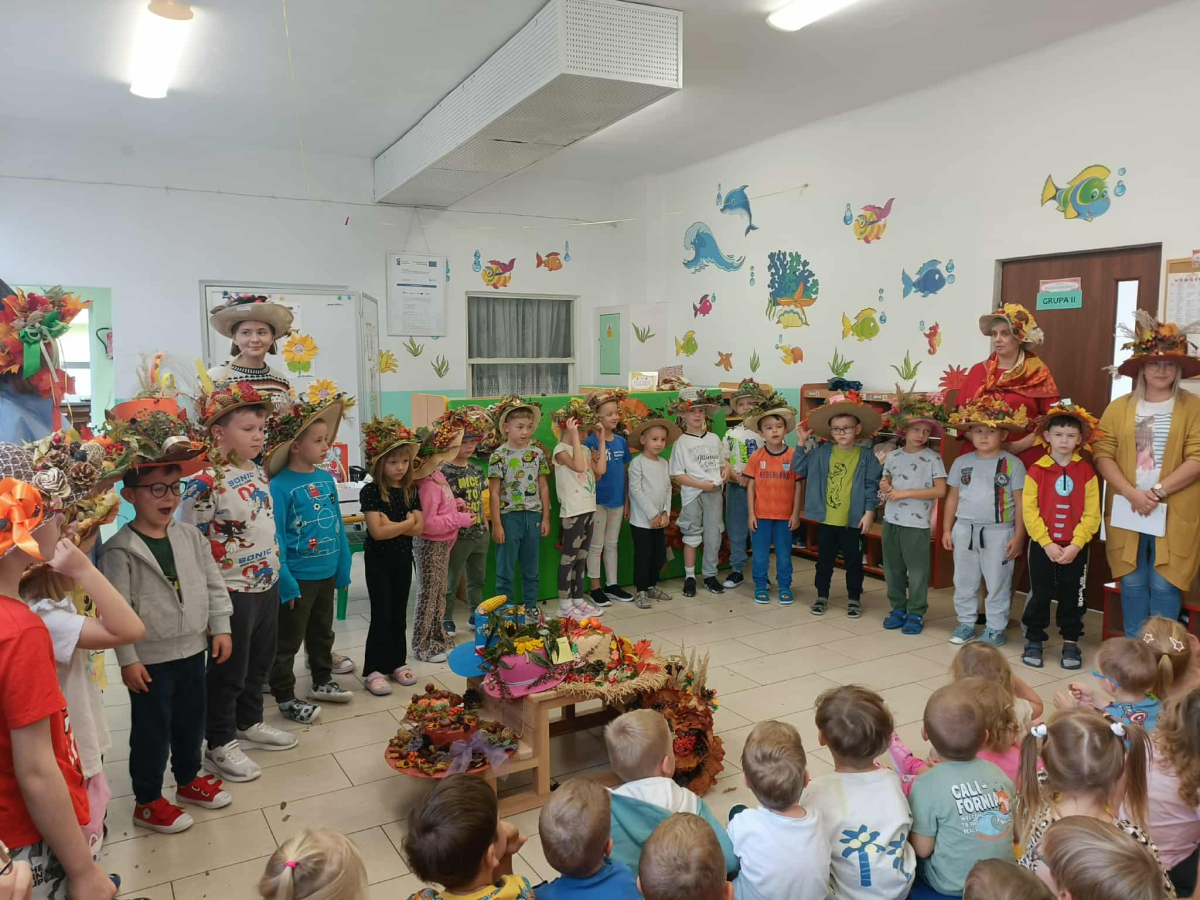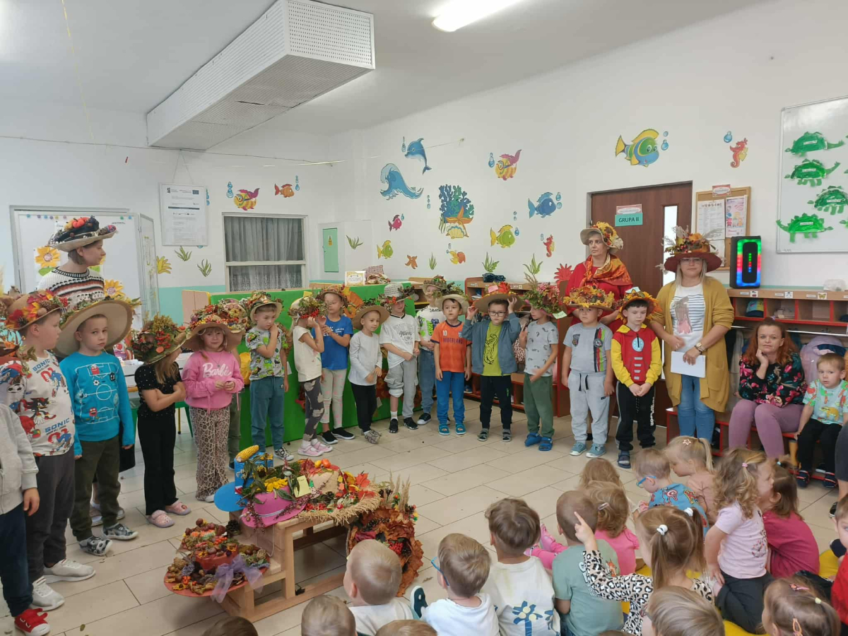 Dnia 23 września w naszym przedszkolu powitaliśmy nową porę roku - Jesień. Tego dnia również został rozstrzygnięty rodzinny konkurs plastyczno-techniczny pt. "Kapelusz Pani Jesieni". Celem konkursu było uwrażliwienie na piekno przyrody jesienią, zachęcenie rodziców do wspólnie spędzonego czasu z dziećmi oraz rozwijanie wyobraźni poprzez twórczą interpretację przyrody.