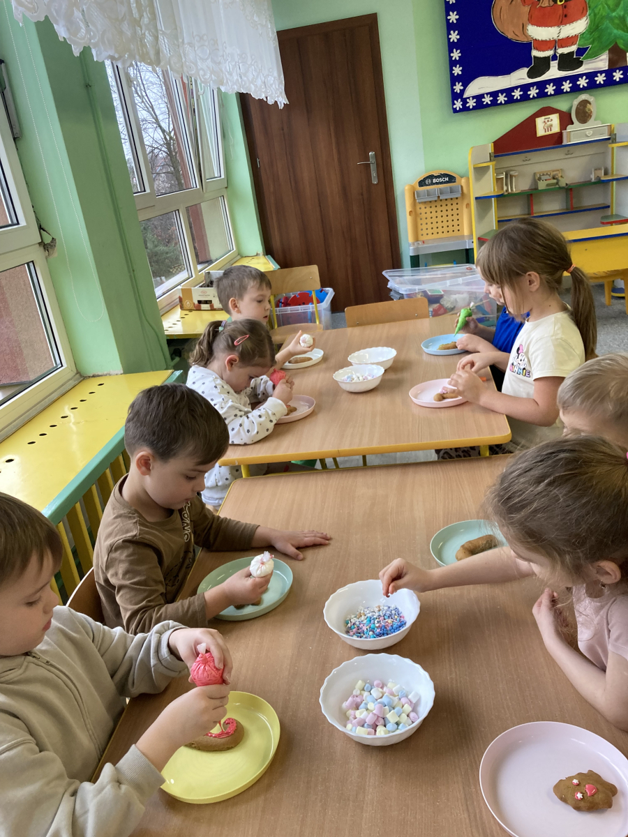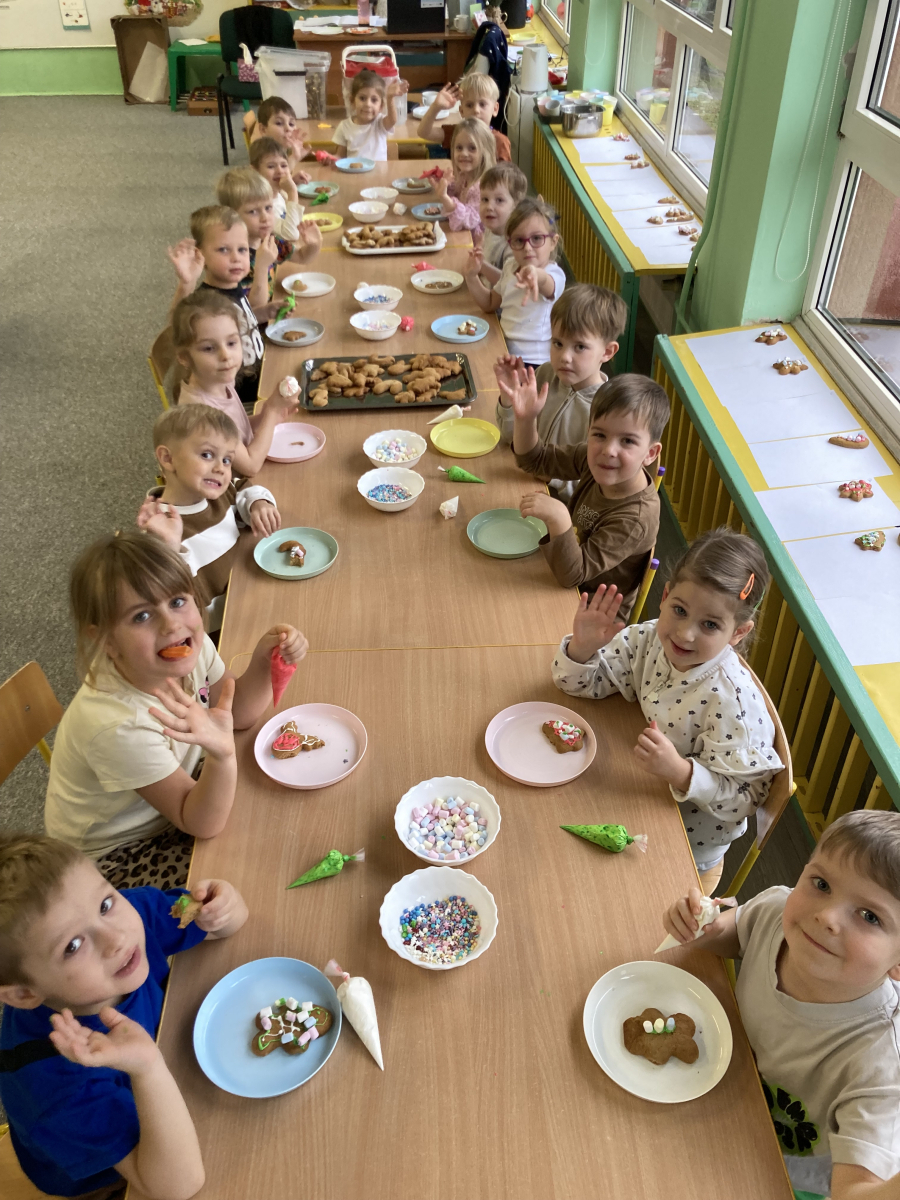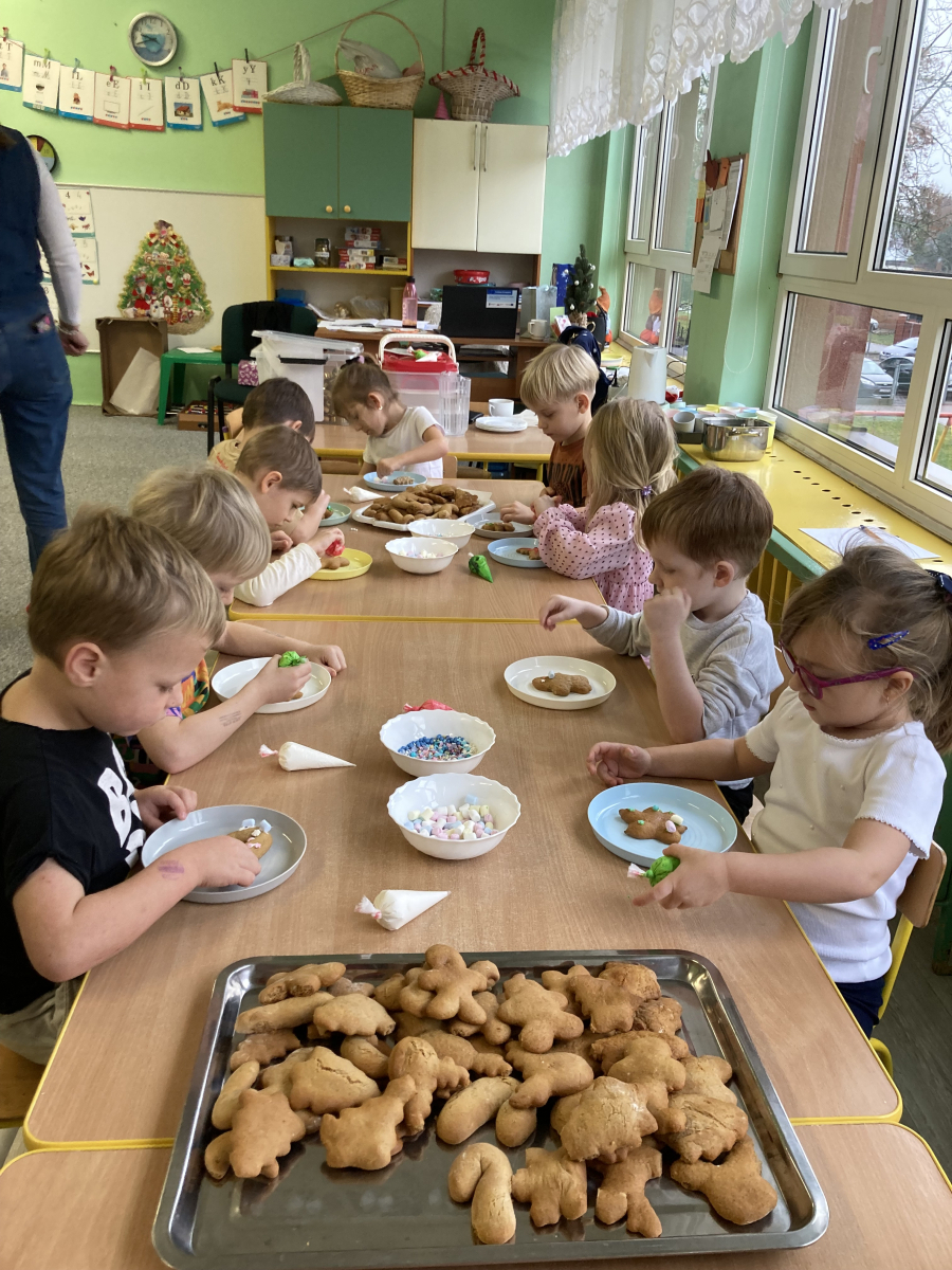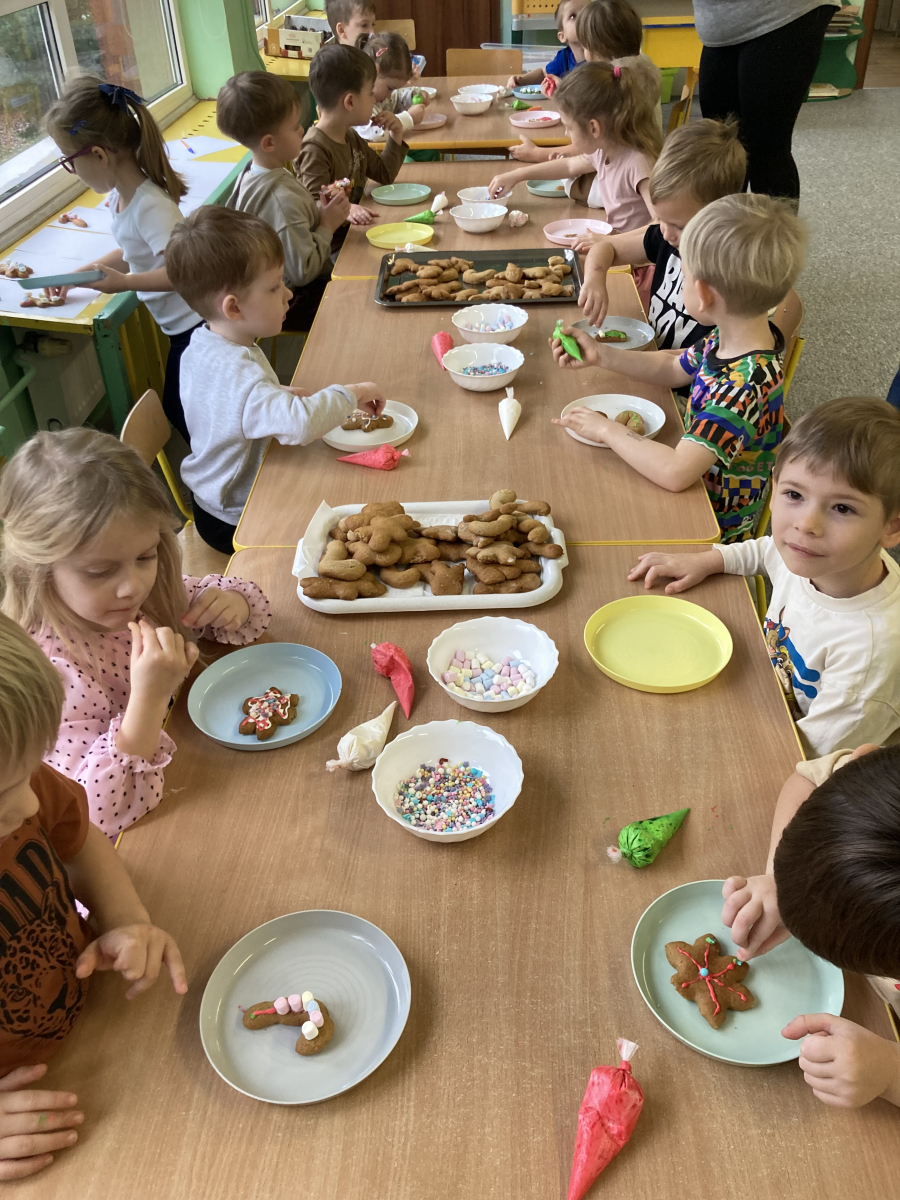 - po upieczeniu dzieci ozdabiały pierniczki kolorowymi polewami i posypkami,