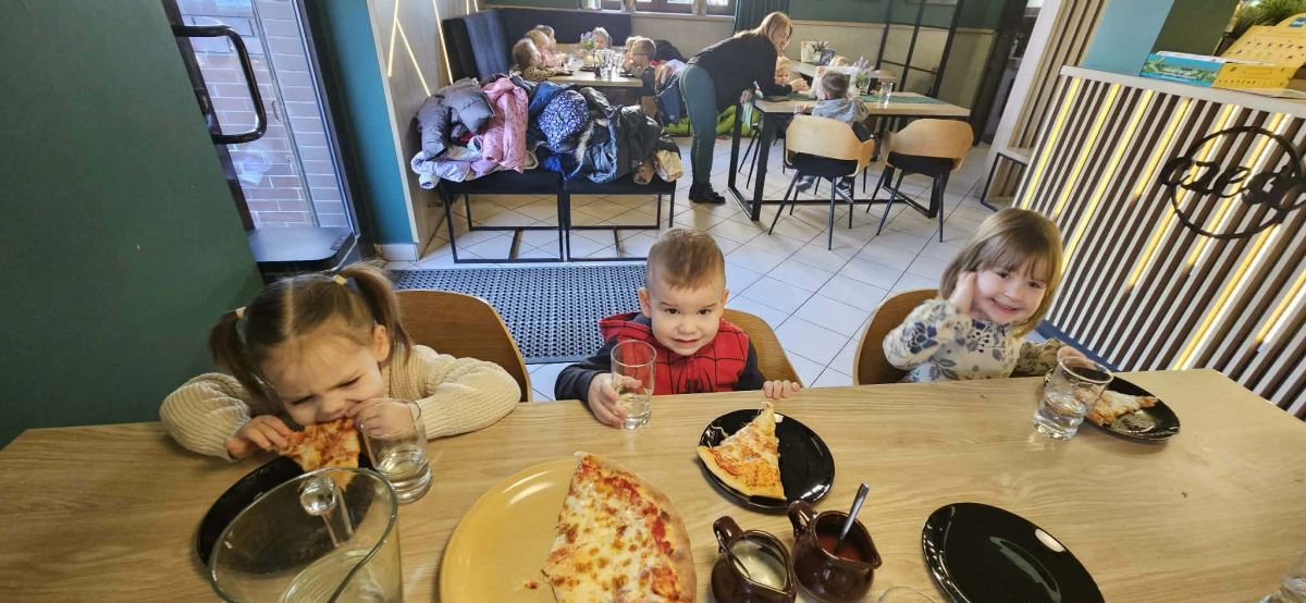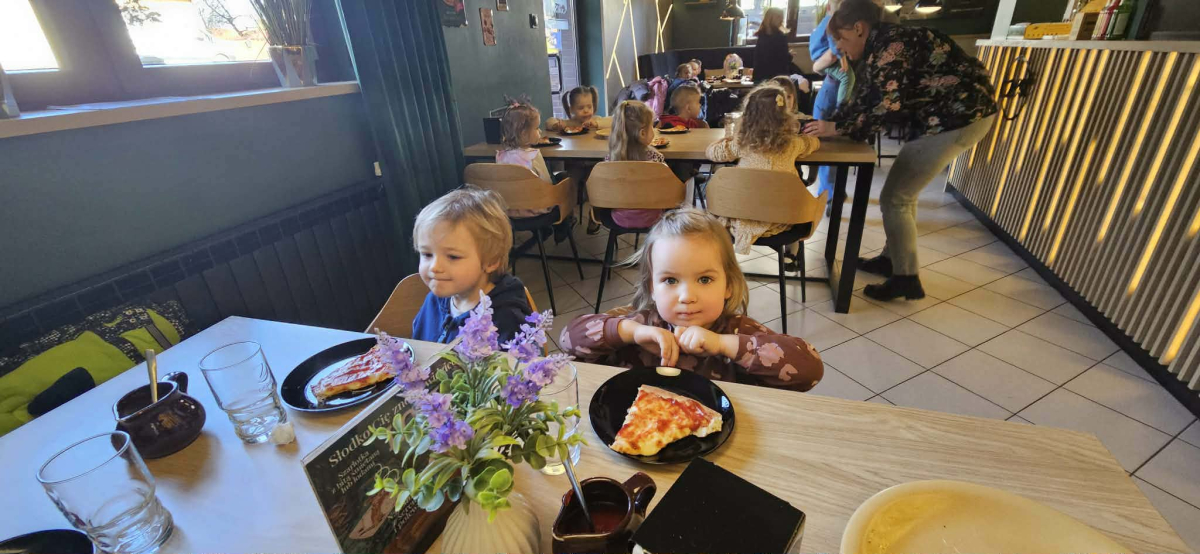 Z okazji Dnia Kobiet dzieci z grupy „Biedroneczki” wybrały się na wspólne wyjście do pizzerii Giuseppe. Celem wyjścia była integracja grupy oraz wspólne świętowanie tego wyjątkowego dnia. Dzieci miały okazję spróbować pysznej pizzy, spędzić miło czas przy wspólnym stole oraz uczyć się zasad kulturalnego zachowania w miejscu publicznym.