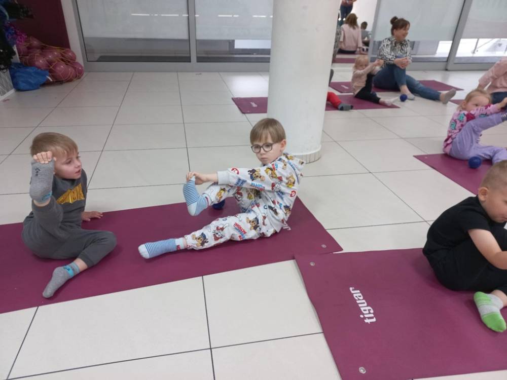 Dzieci miały okazję wykonać ćwiczenia rozciągające, masaż oraz przejść po ścieżce sensorycznej. Był czas na wspólny taniec oraz zabawę.