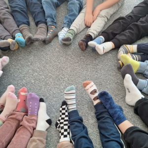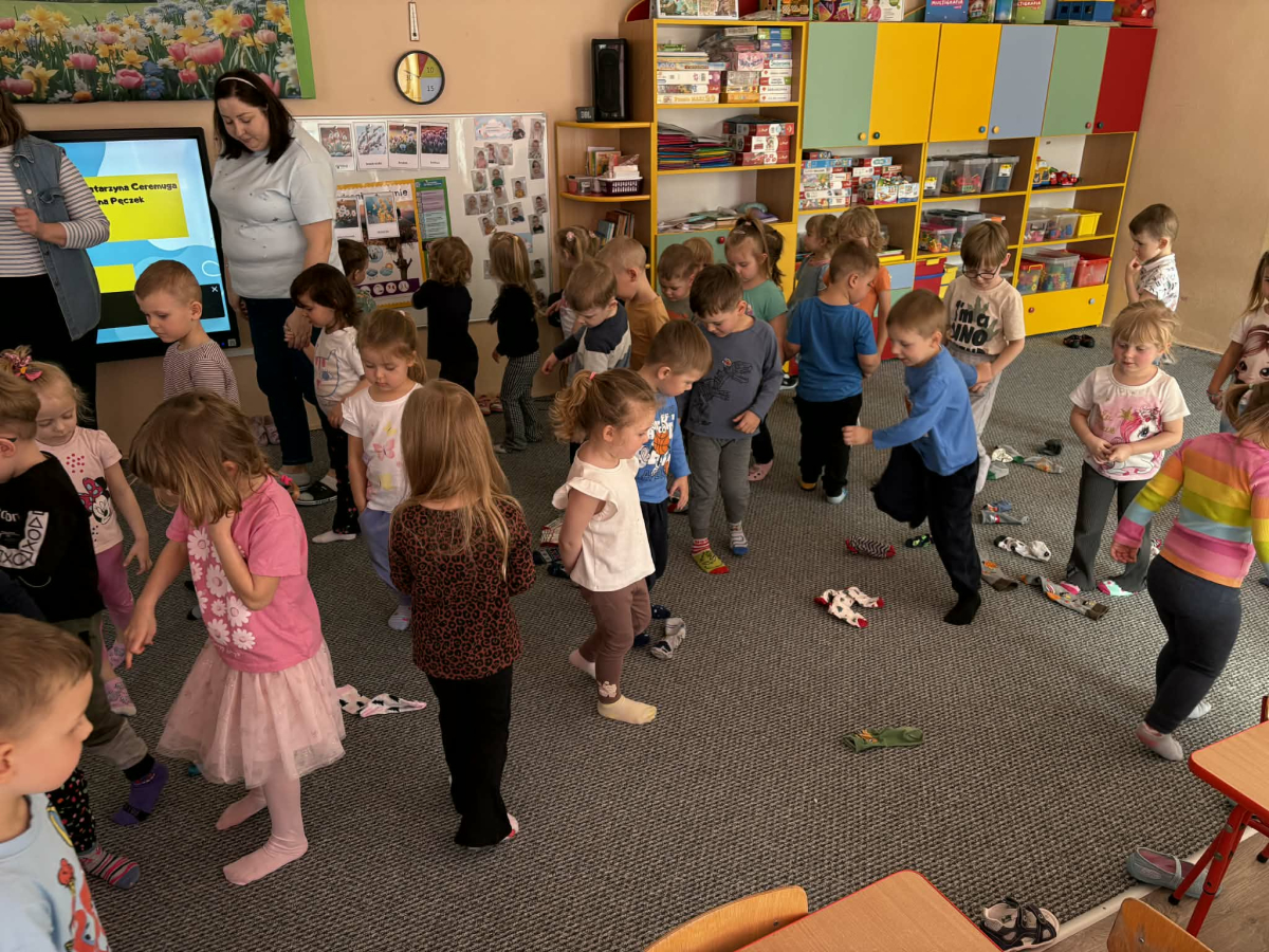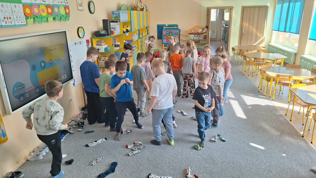 23 marca w naszym przedszkolu obchodziliśmy wyjątkowe święto- Dzień Kolorowej Skarpetki. Tego dnia dzieci przyszły ubrane w różnokolorowe, nie do pary skarpety, aby okazać wsparcie, akceptację i zrozumienie dla rożnorodności. W tym dniu towarzyszyły nam zabawy ruchowe i muzyczne ze skarpetkami. Obejrzeliśmy również krótki filmik, który miał na celu wyjaśnienie co to jest Zespół Downa oraz uczył akceptacji, tolerancji i szacunku. Na zakończenie każde dziecko dostało kolorowankę i naklejkę. Był to dzień pełen radości, uśmiechu i ważnych rozmów o akceptacji i empatii.