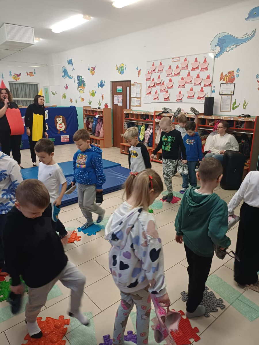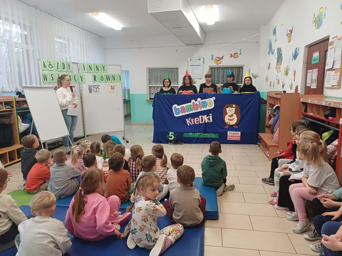 W naszym przedszkolu obchodziliśmy Dzień Osób z Niepełnosprawnościami. Dzieci obejrzały teatrzyk o kolorowych kredkach, który w przystępny sposób pokazał, że każdy jest ważny i wyjątkowy, nawet jeśli różni się od innych. Po przedstawieniu odbyły się wspólne zabawy integracyjne, podczas których przedszkolaki uczyły się współpracy, empatii i wzajemnego wsparcia. Był to radosny i wartościowy dzień, pełen dobrej zabawy i pozytywnych emocji.