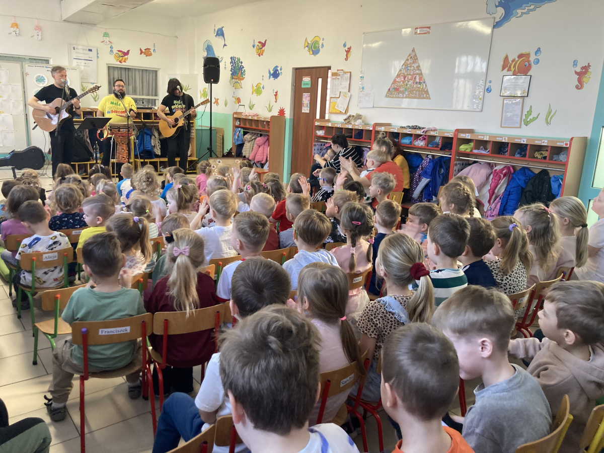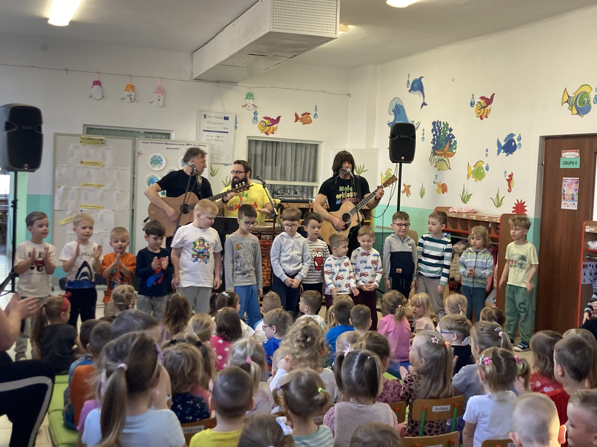 W naszym przedszkolu odbyło się wyjątkowe spotkanie z zespołem muzycznym Mała Orkiestra Dni Naszych. Artyści zaprezentowali dzieciom radosny koncert pełen muzyki, śpiewu oraz wspólnej zabawy.