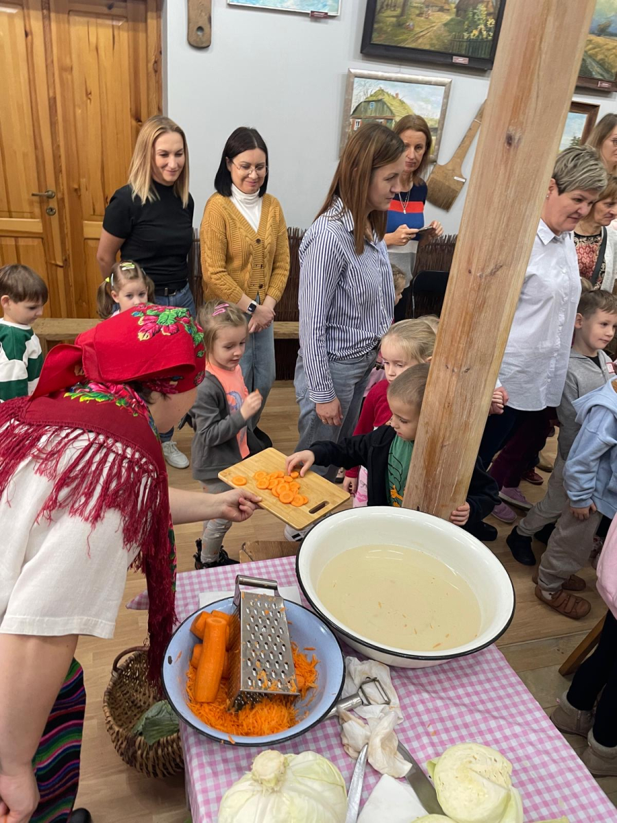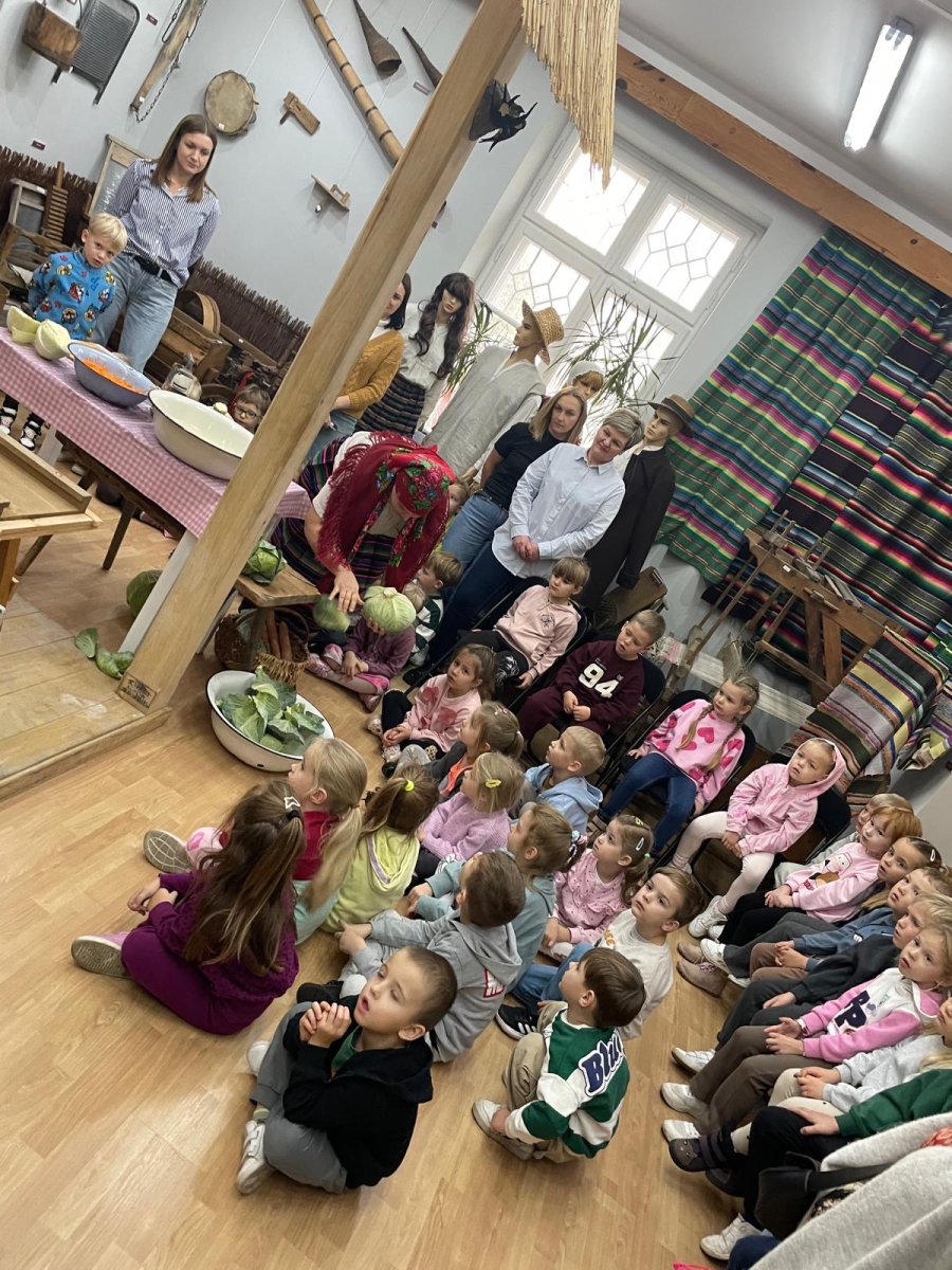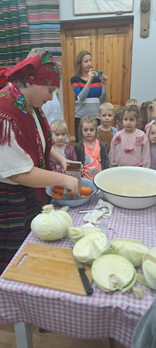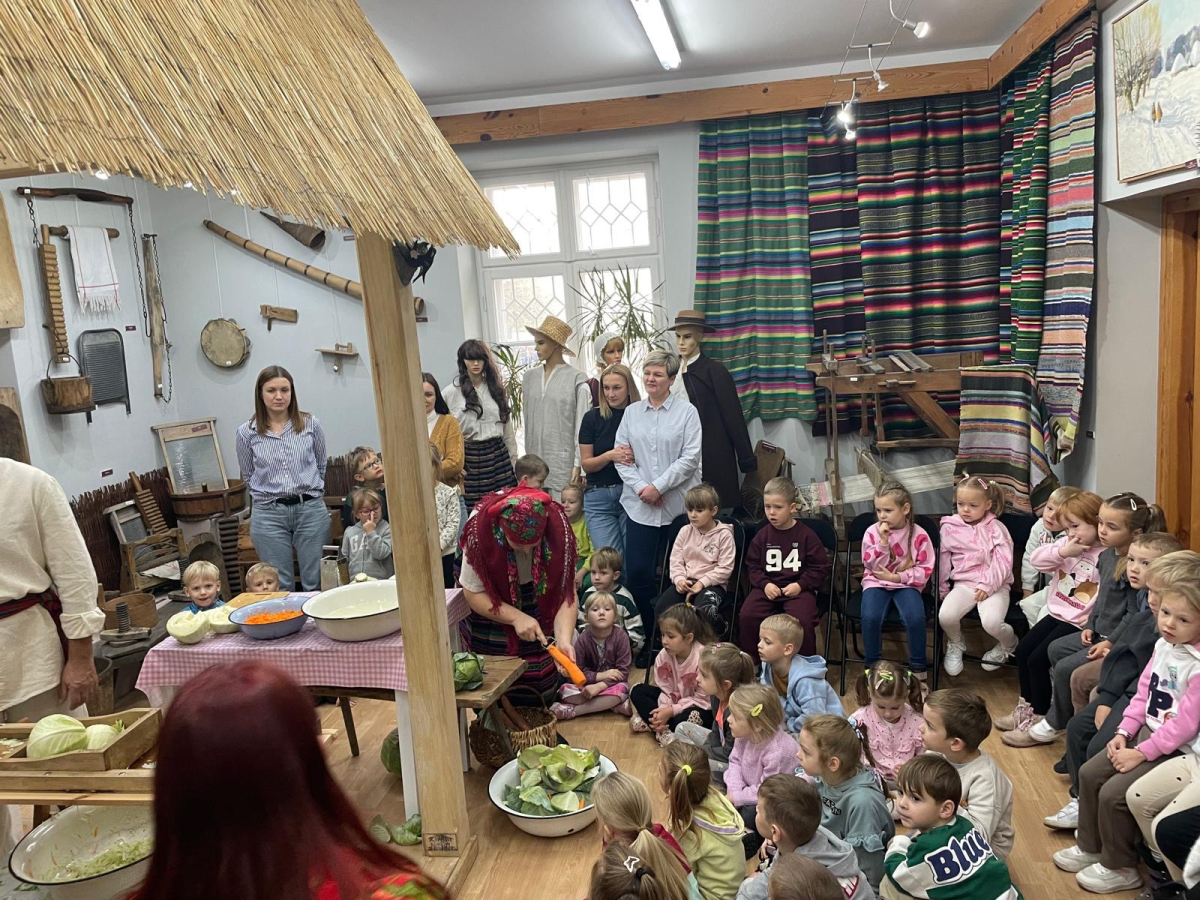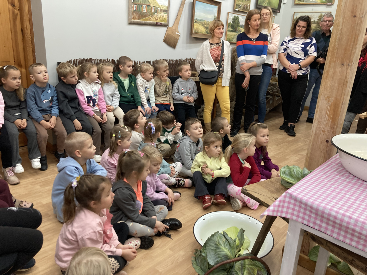 W dniu 23 października 2025 r. dzieci z grupy Krasnoludki i Jagódki wybrały się do Muzeum Regionalnego w Łukowie i wzięły udział w tradycyjnch warsztatach „kiszenia kapusty”. Pani Agnieszka Szaniawska – kustosz muzealny opowiedziała uczestnikom zajęć o historii i tradycjach związanych z kiszeniem kapusty.