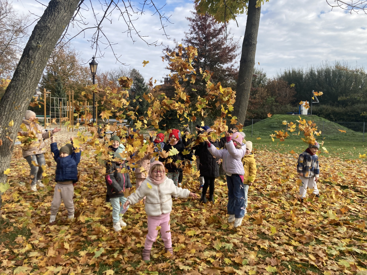 22 października dzieci z grup Krasnoludki wraz z paniami pojechali Komunikacją Miejską do parku. Celem wycieczki była obserwacja przyrody jesienią oraz zabawa na świeżym powietrzu. Dzieci wzbogaciły wiedzę o jesieni, rozpoznawały i nazywały drzewa. Wspólna zabawa i działania zbudowały relacje między dziećmi.