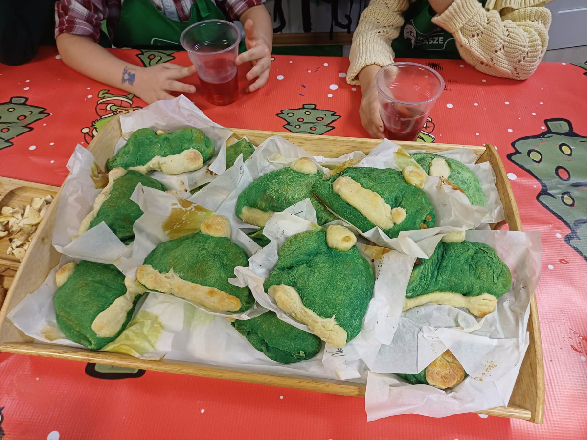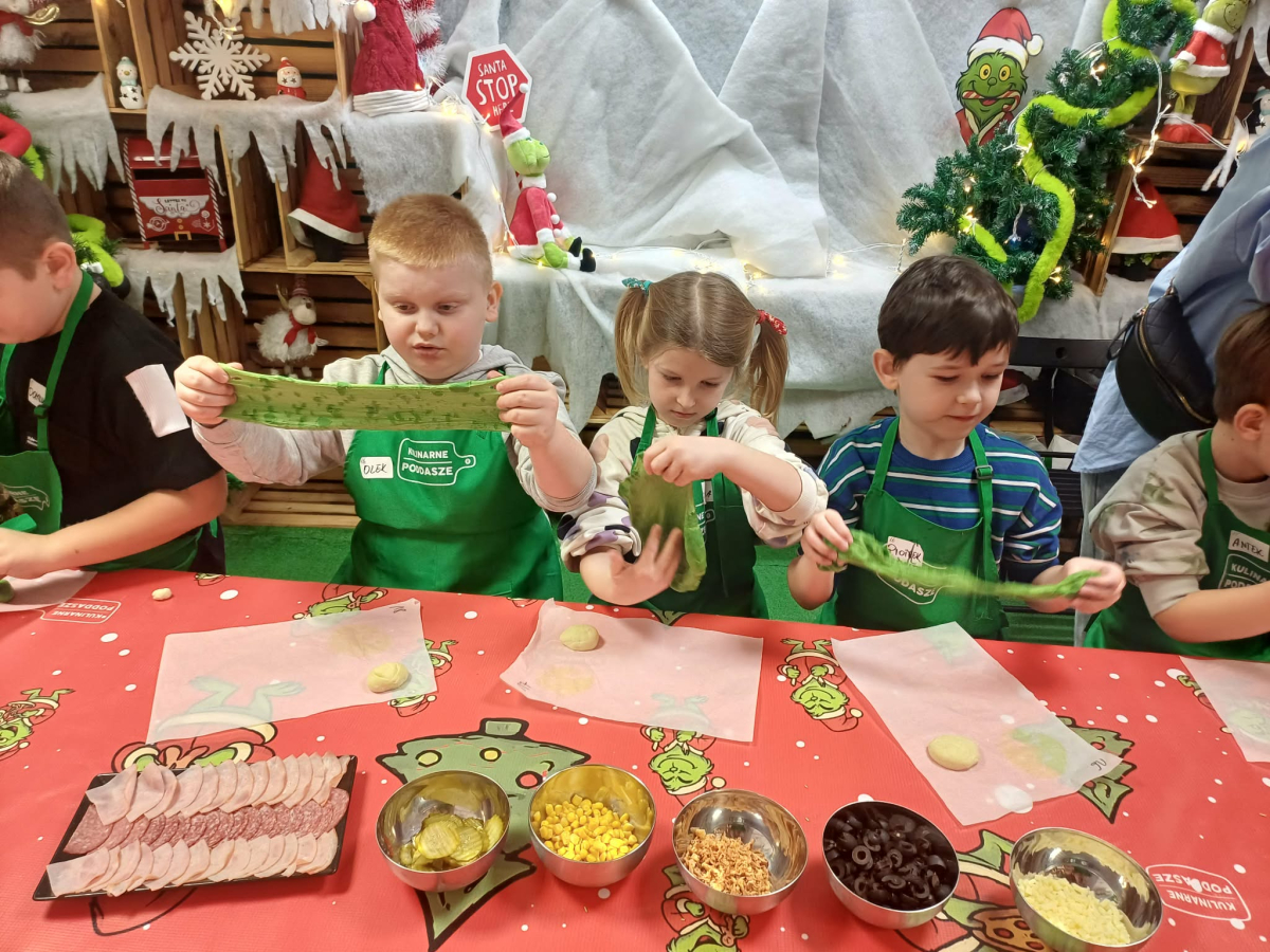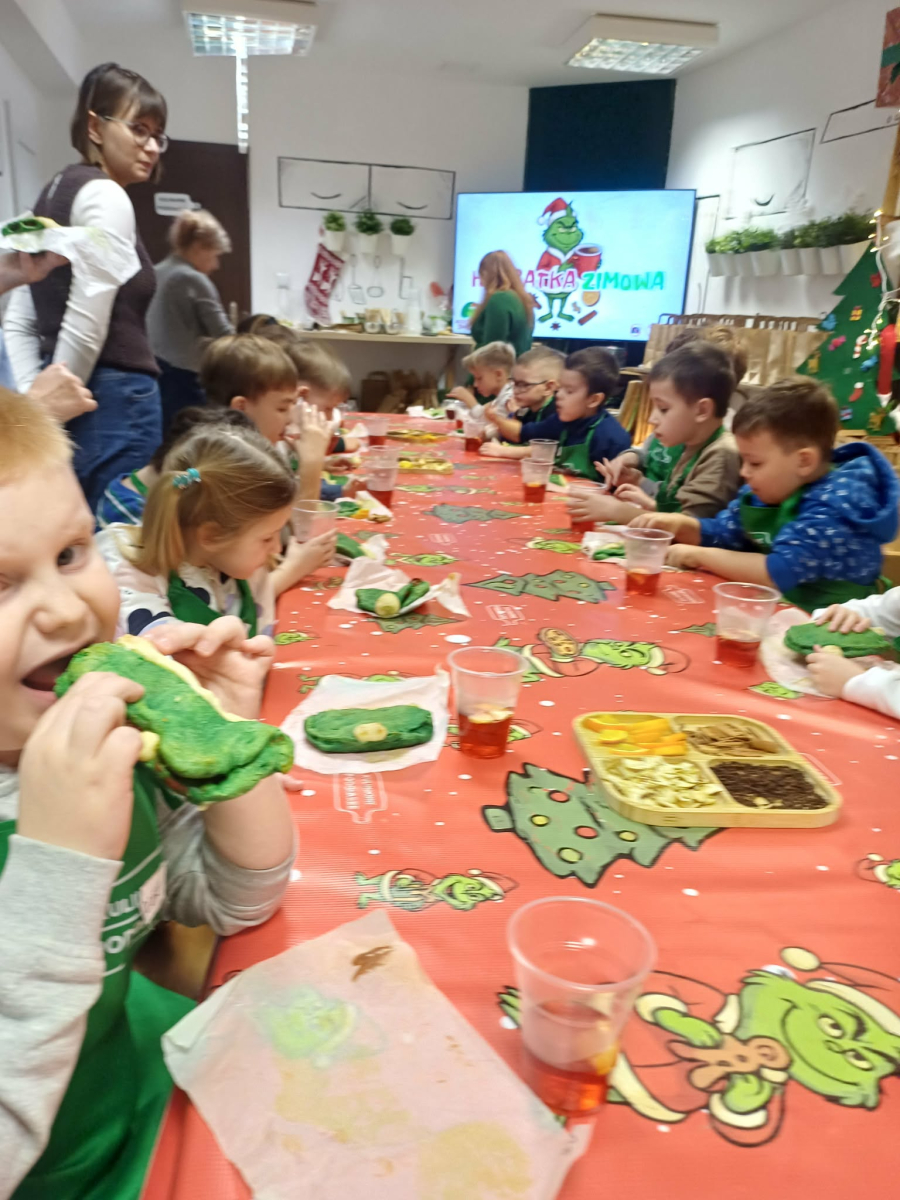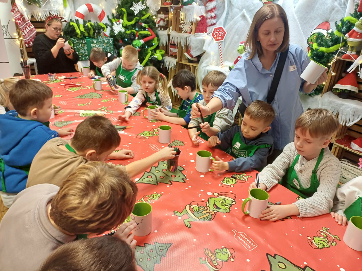 - Miały okazję samodzielnie wykonać pizze w kształcie czapki, choinkę z piernika, herbatkę zimową, kubek własnoręcznie malowany, a także degustowali kremy orzechowe.