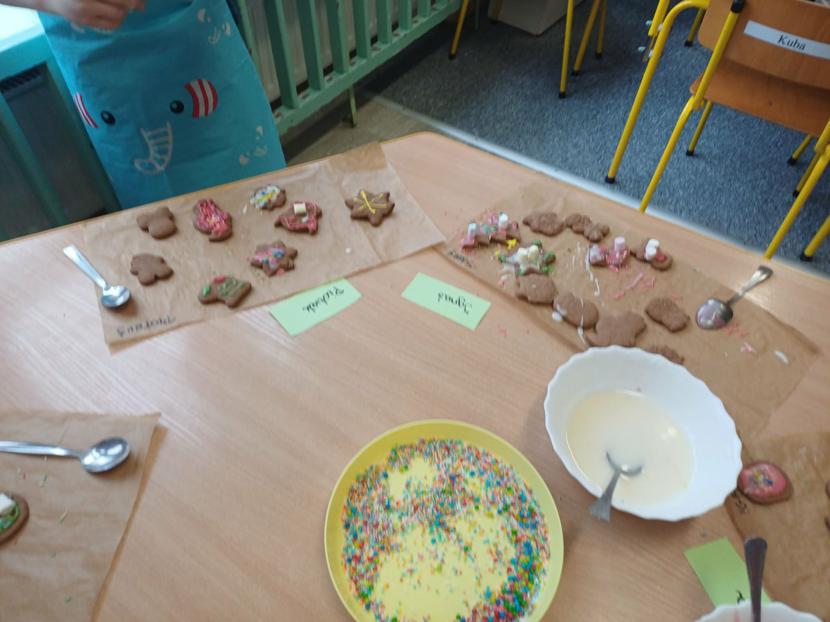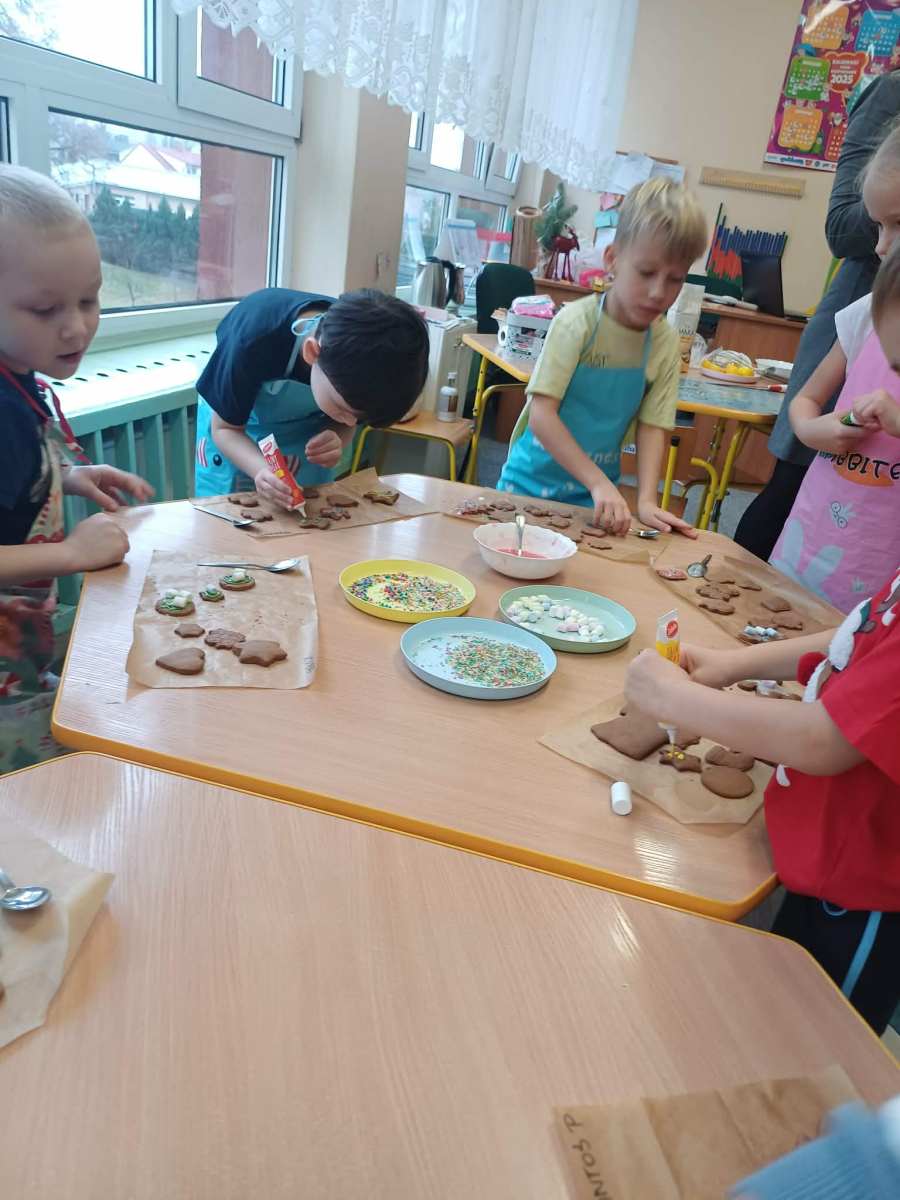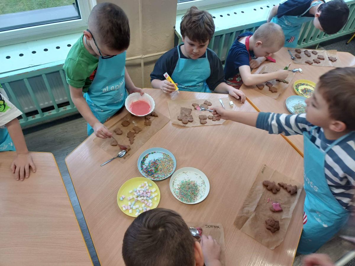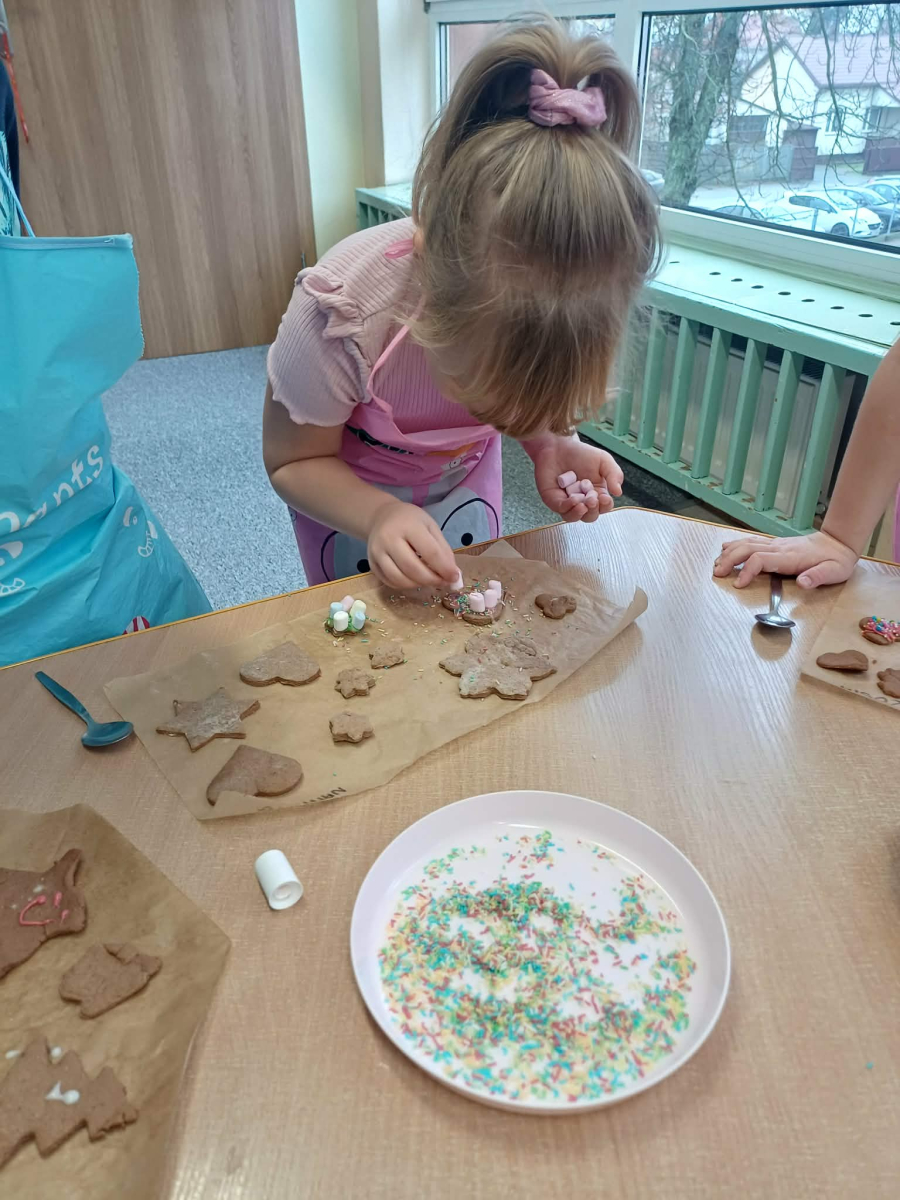 Po ostygnięciu ciasteczek nadszedł czas na największą frajdę – dekorowanie! Na stołach pojawiły się kolorowe lukry, posypki, perełki i pianki. Dzieci zamieniły proste pierniczki w małe, jadalne dzieła sztuki.