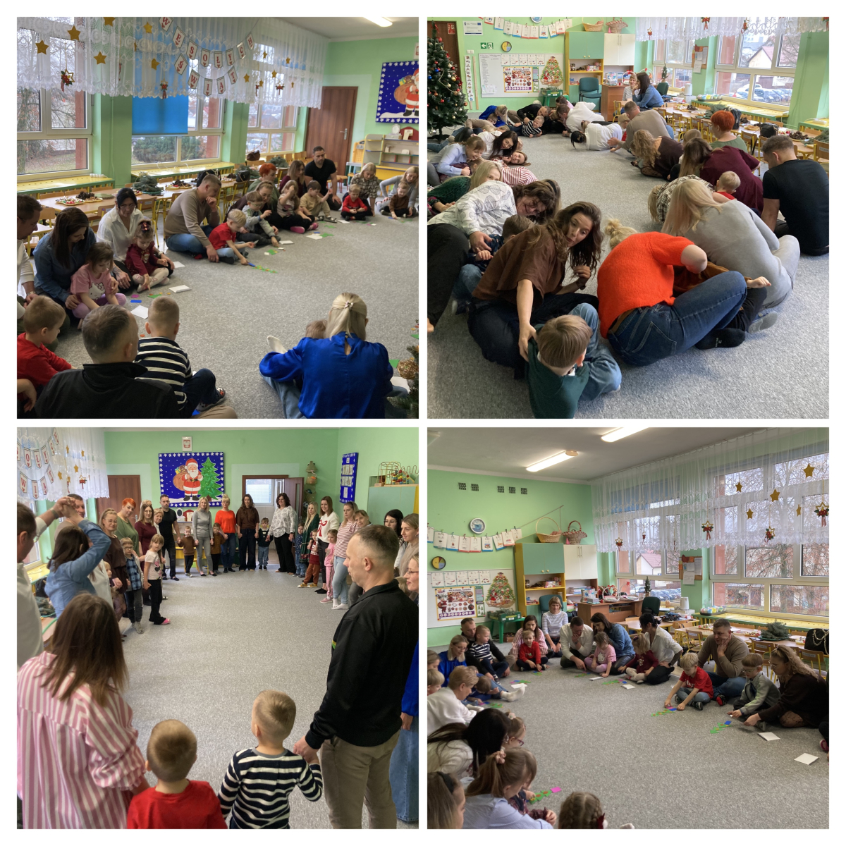 W dniu 15 grudnia w grupie Krasnoludki odbyły się zajęcia otwarte o tematyce bożonarodzeniowej z udziałem rodziców. Celem spotkania było wprowadzenie dzieci i rodziców w świąteczny nastrój, wzmacnianie więzi rodzinnych oraz integracja społeczności przedszkolnej.